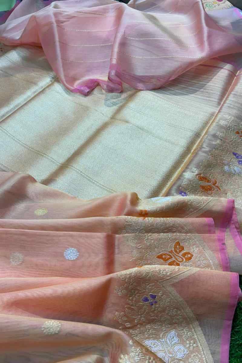 At Rungkaat, we have always held Kora silk with utmost purity and grace. The sheer texture, lightness, and natural stiffness of this silk give it an aura of dignity that is impossible to achieve by few fabrics. Therefore, Kora silk appears royal without being too heavy. The true value lies in its representation of fine craftsmanship, reflected in every intricate detail. Kora Silk Banarasi Sarees in Varanasi embody a rich legacy of tradition and elegance, with every thread reflecting the timeless artistry of the city.