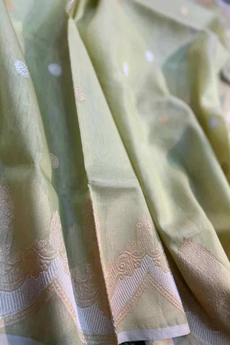 At Rungkaat, we have always held Kora silk with utmost purity and grace. The sheer texture, lightness, and natural stiffness of this silk give it an aura of dignity that is impossible to achieve by few fabrics. Therefore, Kora silk appears royal without being too heavy. The true value lies in its representation of fine craftsmanship, reflected in every intricate detail. Kora Silk Banarasi Sarees in Varanasi embody a rich legacy of tradition and elegance, with every thread reflecting the timeless artistry of the city.