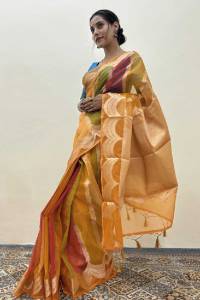 Rungkaat brings to you the Tussar silk sarees that are a perfect representation of the Indian textile tradition which is characterized by soft textures and colors inspired by nature. These are basically pure silk sarees that get their attractive shine from from the use of natural raw materials. The material is soft but still has a nice sturdy texture, thus making the fabric to flow gently with the folds. This is exactly what can be experienced in Tussar Silk Sarees in Varanasi as two elements