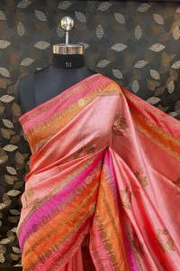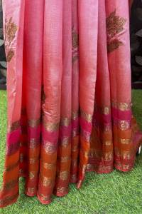 Rungkaat brings to you the Tussar silk sarees that are a perfect representation of the Indian textile tradition which is characterized by soft textures and colors inspired by nature. These are basically pure silk sarees that get their attractive shine from from the use of natural raw materials. The material is soft but still has a nice sturdy texture, thus making the fabric to flow gently with the folds. This is exactly what can be experienced in Tussar Silk Sarees in Varanasi as two elements
