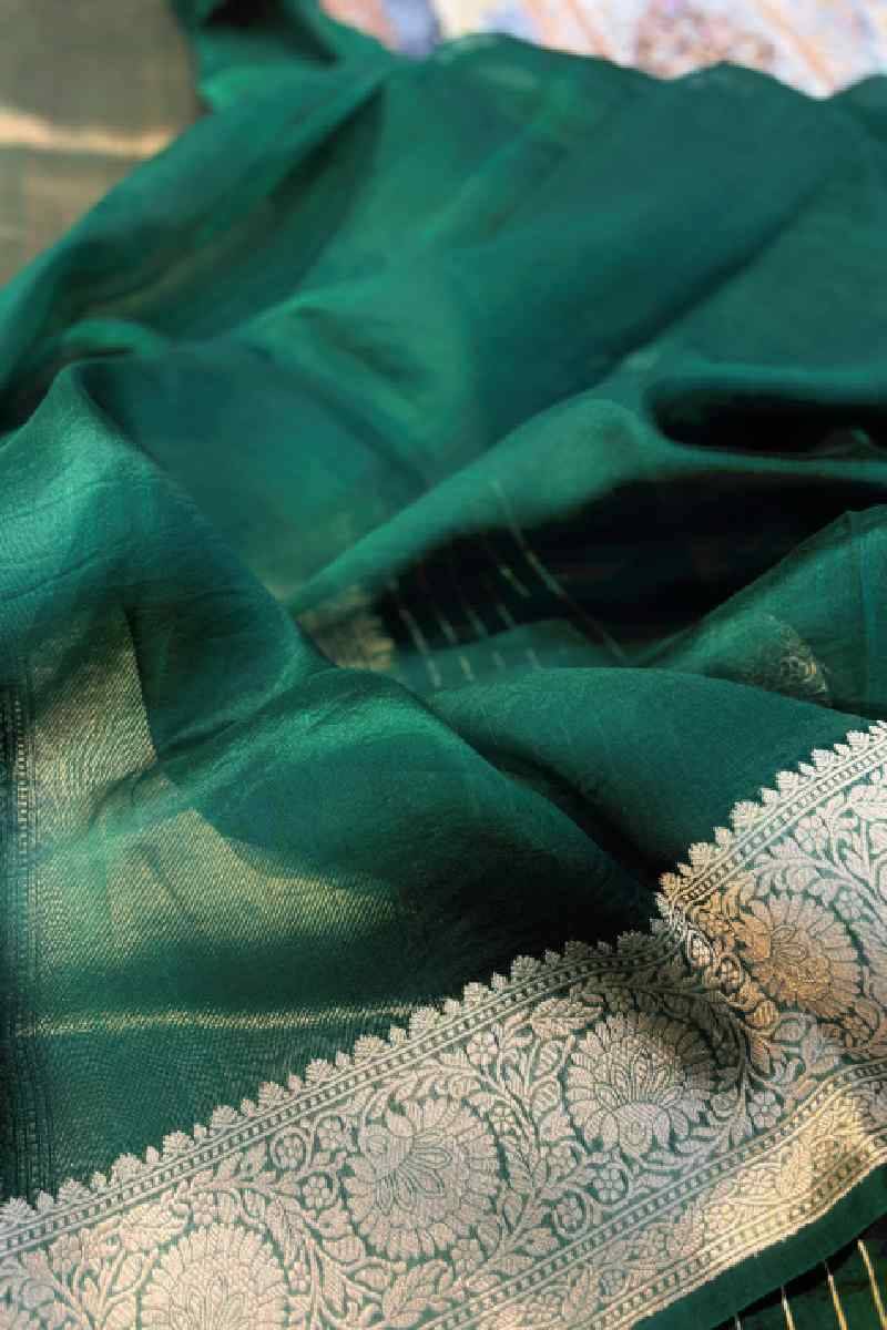 At Rungkaat, we work closely with weavers who understand how to bring life to fabric through texture and light. Dealing with those weavers who know how to breathe life into fabric in texture and light. The delicate shimmer of tissue silk, combined with the detailed craftsmanship, allows a saree to drape effortlessly. There are airy sarees that catch form beautifully and thus are perfect to balance flow with structure. As Banarasi Tissue Silk Sarees in Varanasi continue to symbolize timeless elegance and cultural heritage, we take pride in bringing these masterpieces to admirers around the world.