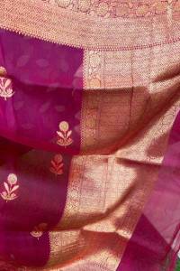 At Rungkaat, we have always held Kora silk with utmost purity and grace. The sheer texture, lightness, and natural stiffness of this silk give it an aura of dignity that is impossible to achieve by few fabrics. Therefore, Kora silk appears royal without being too heavy. The true value lies in its representation of fine craftsmanship, reflected in every intricate detail. Kora Silk Banarasi Sarees in Varanasi embody a rich legacy of tradition and elegance, with every thread reflecting the timeless artistry of the city.