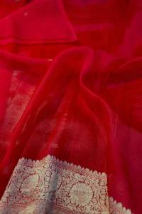 Rungkaat presents chiffon sarees that capture the beauty of effortless elegance. The airy, soft texture of chiffon makes these sarees a favorite among women who love comfort with sophistication. The material is draped very neatly, it gives a very nice shape to the body and keeps the person cool and elegant. Every collection is an embodiment of the subtleness that is in each Chiffon Saree in Varanasi which is adored by the people who put it on because it is an ideal mixture of delicacy and charm.