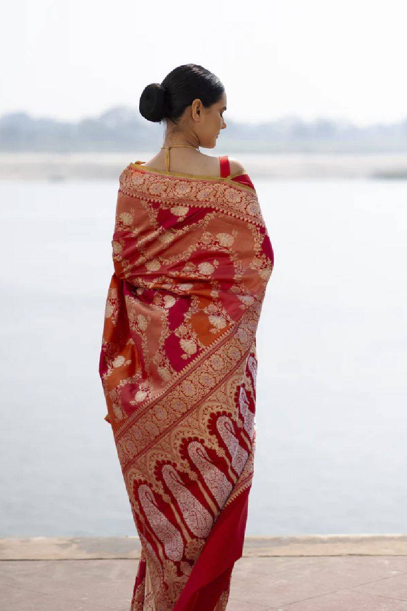 At Rungkaat, we work closely with weavers who understand how to bring life to fabric through texture and light. Dealing with those weavers who know how to breathe life into fabric in texture and light. The delicate shimmer of tissue silk, combined with the detailed craftsmanship, allows a saree to drape effortlessly. There are airy sarees that catch form beautifully and thus are perfect to balance flow with structure. As Banarasi Tissue Silk Sarees in Varanasi continue to symbolize timeless elegance and cultural heritage, we take pride in bringing these masterpieces to admirers around the world.